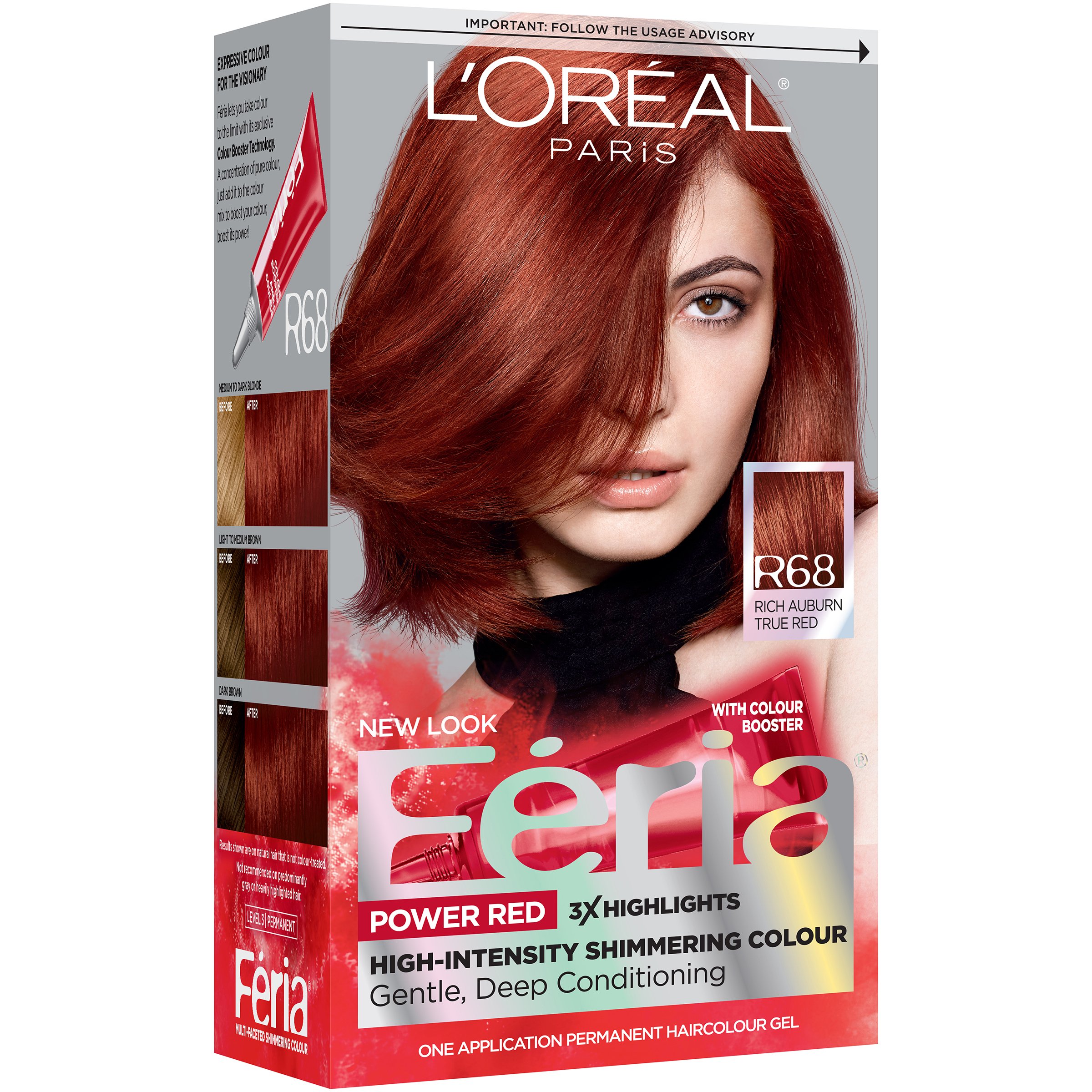 L Oreal Paris Feria Permanent Hair Color R68 Ruby Rush Rich Auburn True Red Shop Hair Care At H E B